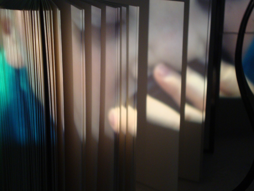This is a photograph of a projection from a film projector on to objects that are picked at random. Most of my art work is displayed as an installation and I have recently begun to do video work.